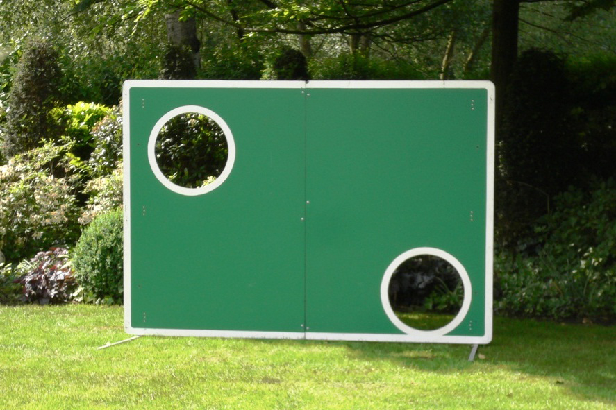 hier kommt rein, wie groß die Torwand ist und wie groß die beiden Aussparungen sind.